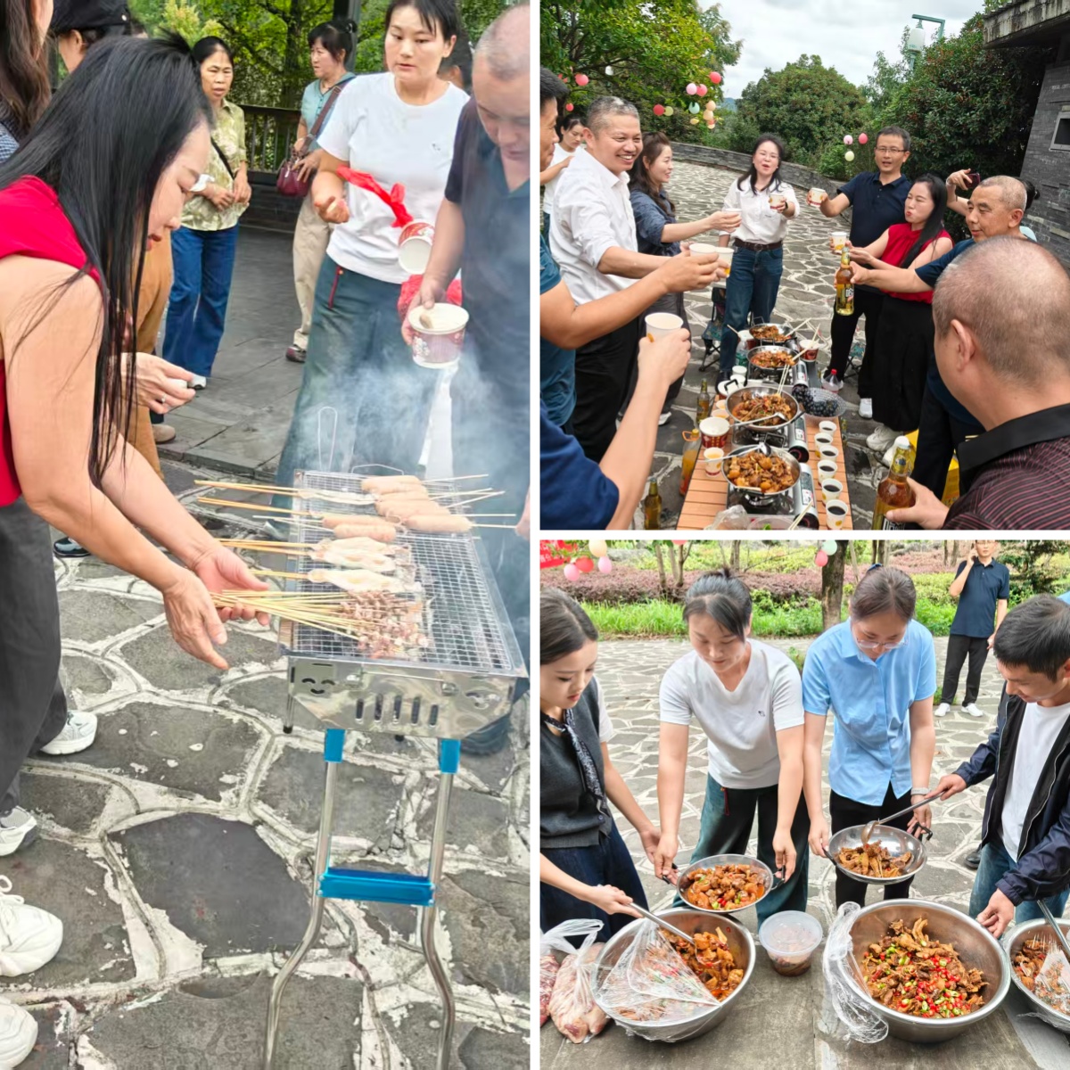 游戏结束后,全员移步户外烧烤区开启“温馨时刻”。大家围坐品茶,一边动手烤制美食,一边分享工作趣事与生活感悟;悠扬的音乐声中,新老员工互相夹菜、畅谈心得,加深了彼此的了解与情谊。